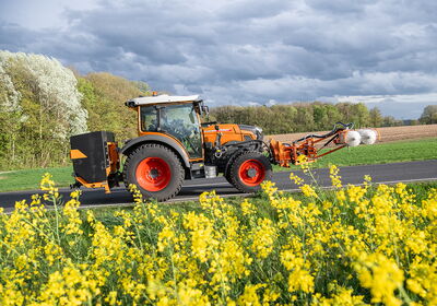 Grâce à la propulsion électrique, il s'agit du premier tracteur produit en série qui fonctionne avec un niveau de bruit réduit et sans émissions. Ce tracteur à voie étroite est prédestiné à une utilisation dans les cultures spéciales, les serres, les communes ou les exploitations produisant leur propre électricité.